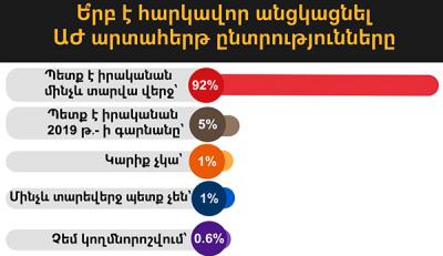• Արտահերթ ընտրությունները պետք է իրականան մինչև տարվա վերջ։ 91.9%